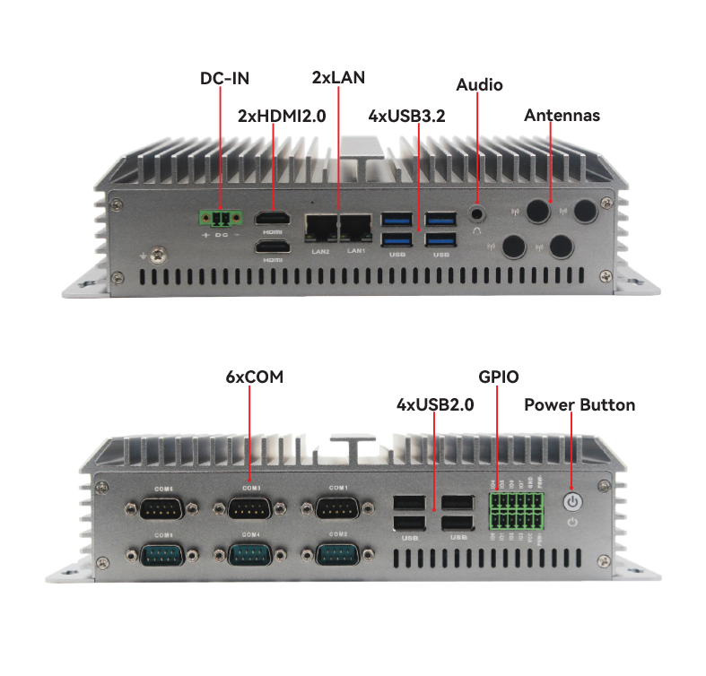 I/O Ports: 4xUSB3.2, 4xUSB2.0. 2xLAN, 6xCOM