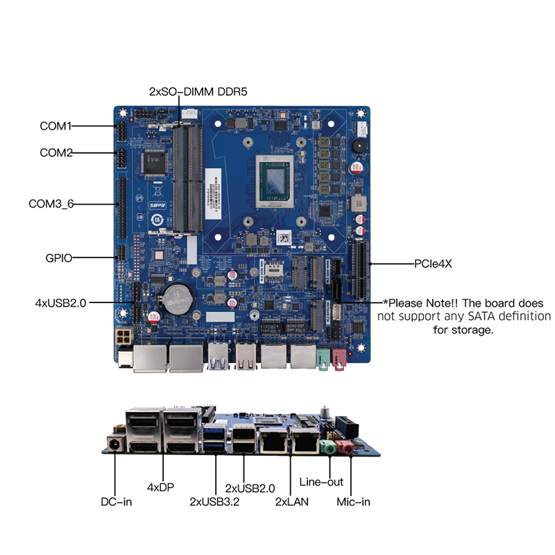 Expansion: PCIe 4X, M.2 for Wi-Fi, M.2_2242 Slot for 4G, Nano SIM