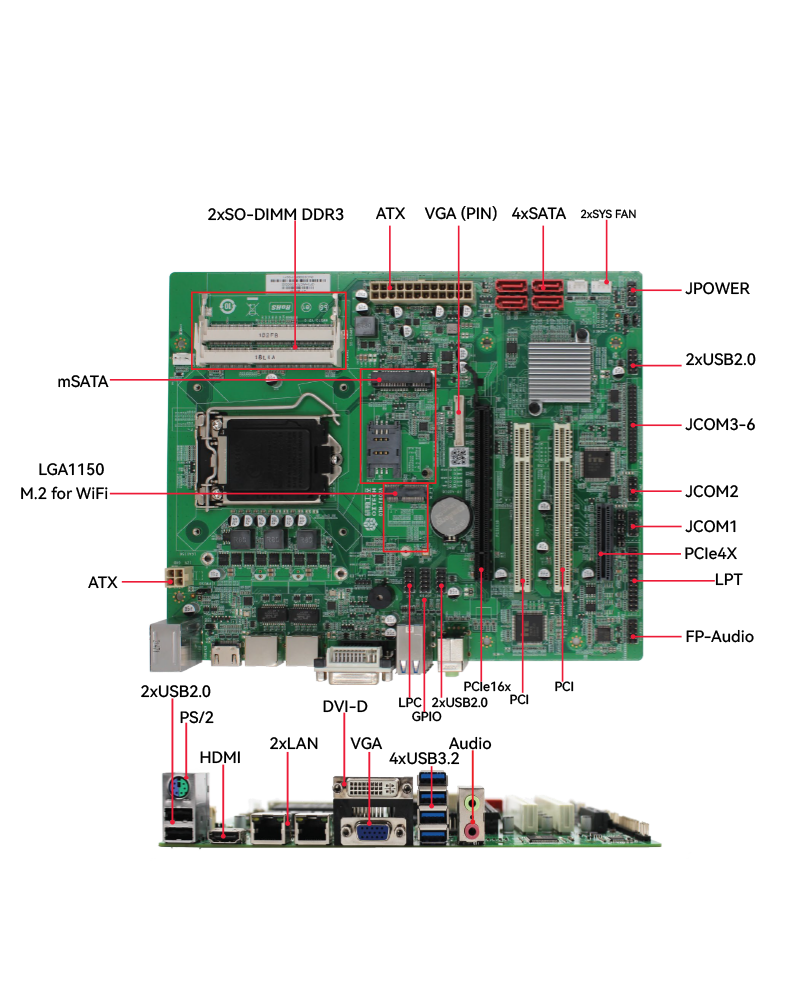 The HWD70 is a micro ATX motherboard based on the Intel® Haswell LGA1150 CPU with B85 chipset, provides a complete PC platform with powerful performance. The board supports up to 16GB of two SO-DIMM DDR3 memory with multiple displays via 2xVGA+HDMI®. It has two 1-Giga-bit Ethernet controllers, M.2 for Wi-Fi; PCI and PCIe for expansion, 4xSATA, and 1x mSATA for storage. A rich interface includes 6x COM, 6 x USB2.0, 4 x USB3.2 Line-out, and Mic-in caters to most market requirements. It is designed with a rich interface to meet all kinds of applications like data processing, transmission, and displaying.