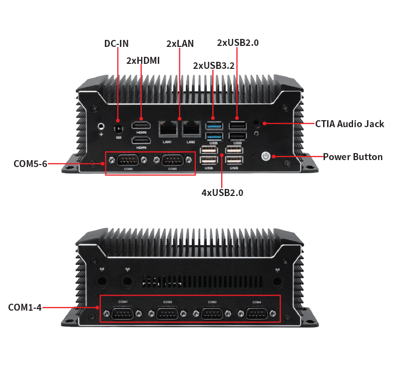 Featuring rich I/O connectivity including dual Gigabit LAN, six COM, eight USB ports, and dual HDMI 2.0 outputs, the system offers flexible interfacing for various industrial and embedded applications. With built-in storage expansion (mSATA, M.2, SIM) and wide 9–35 V DC input, it provides true plug-and-play convenience for automation, digital signage, machine vision, and edge computing scenarios, delivering reliable performance right out of the box.
