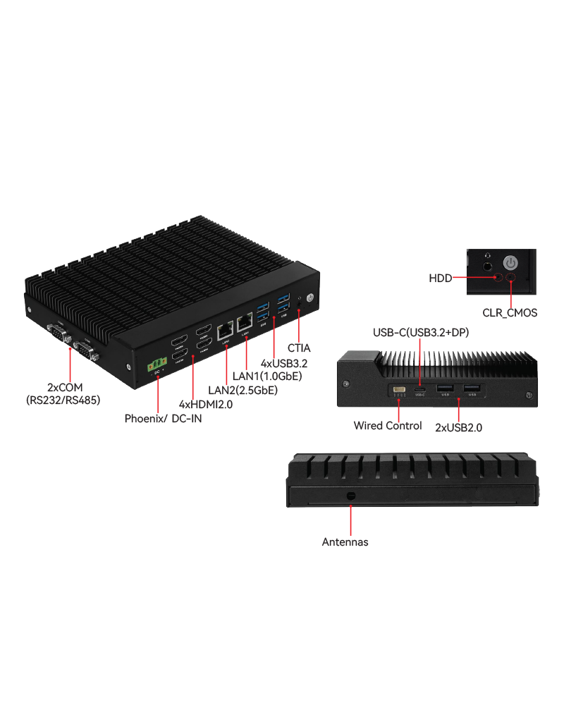 The Maxtang SXC-ARL30 is a compact, high-performance embedded mini PC powered by Intel® Meteor Lake and Arrow Lake-U/H processors, offering configurations up to 16 cores and 22 threads with turbo frequencies up to 4.8GHz. It supports dual-channel DDR5 memory expandable to 96GB and integrates Intel® Graphics or Intel® Arc™ GPUs with Intel® AI Boost NPU for accelerated AI inference. With four HDMI 2.0 outputs plus USB-C (DP 1.4), the system drives up to four 4K displays simultaneously with HDMI Hot-Plug Lock for enhanced stability, making it ideal for multi-display industrial and AI-driven applications.
